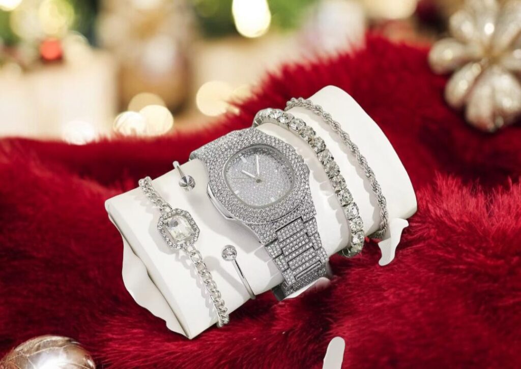 • شامل: ساعت، گردنبند، گوشواره و انگشتر