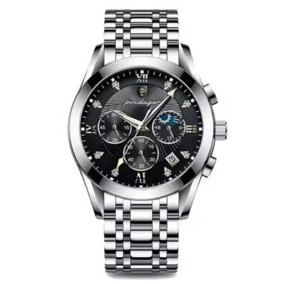 ساعت مردانه پوداگار بند استیل مشکی نقره ای