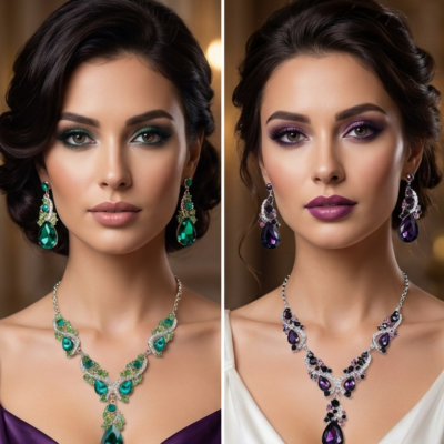 ست گردنبند و گوشواره مجلسی با نگین‌های بنفش درخشان