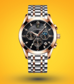 - کیفیت ساخت بالا: بدنه استیل مقاوم که ماندگاری و زیبایی ساعت را تضمین میکند.